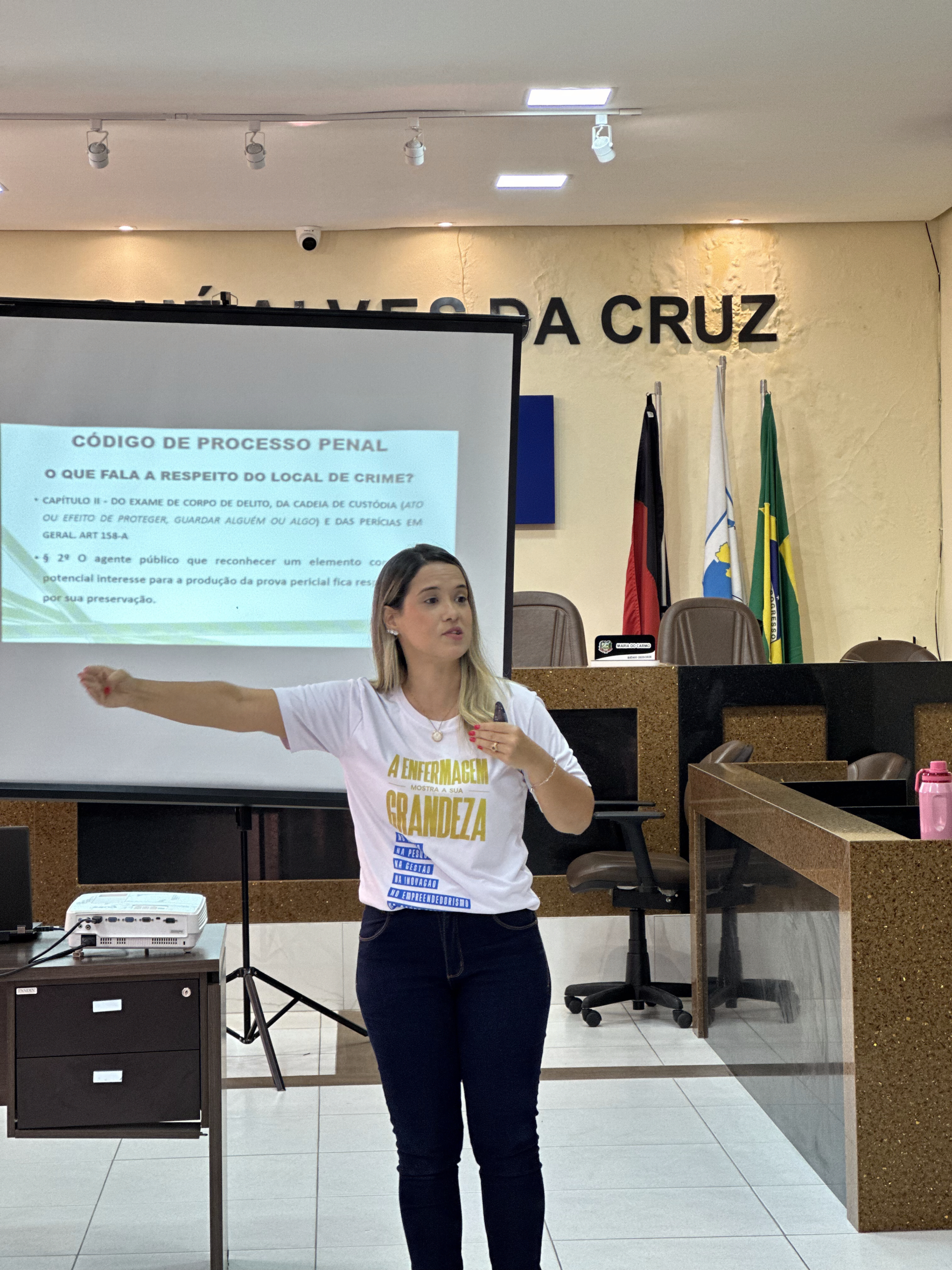 Durante a programação, profissionais de enfermagem participaram de capacitações voltadas ao atendimento em situações de urgência e emergência, com abordagem prática e atualizada. Entre os temas trabalhados, destacaram-se suporte básico de vida, uso do desfibrilador tático, estratégias de abordagem ao paciente em crise e a atuação da enfermagem em cena de crime, conteúdos essenciais para uma assistência segura, ágil e tecnicamente qualificada.