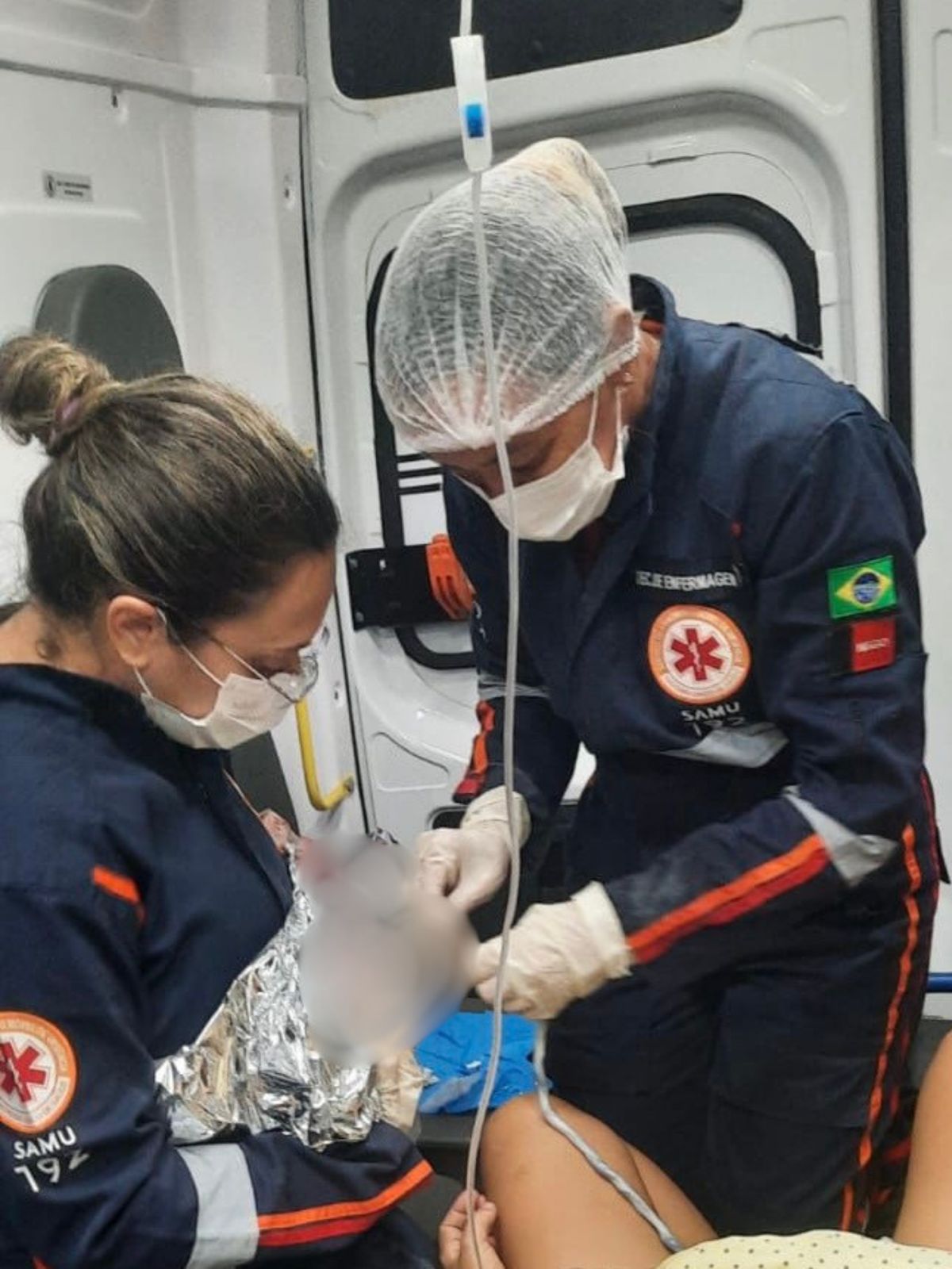 A equipe foi acionada para socorrer uma gestante em trabalho de parto avançado. Durante o deslocamento, a evolução do quadro indicou que não seria possível chegar a uma unidade hospitalar a tempo. Diante da situação, a equipe de enfermagem assumiu a condução do atendimento e realizou o parto dentro da viatura.